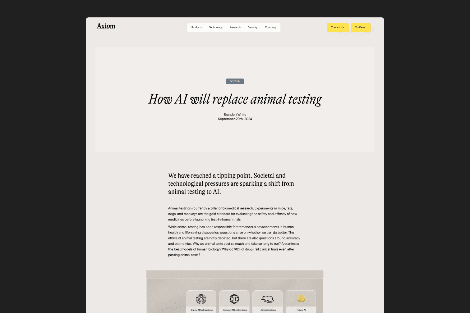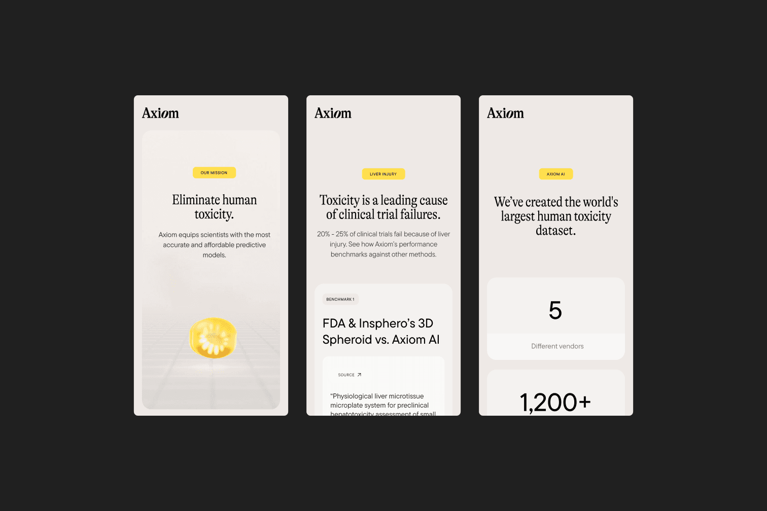 Solo design work for biotechnology startup Axiom Bio, partnering with creative director Justin Barber through creative agency Glenwood.
